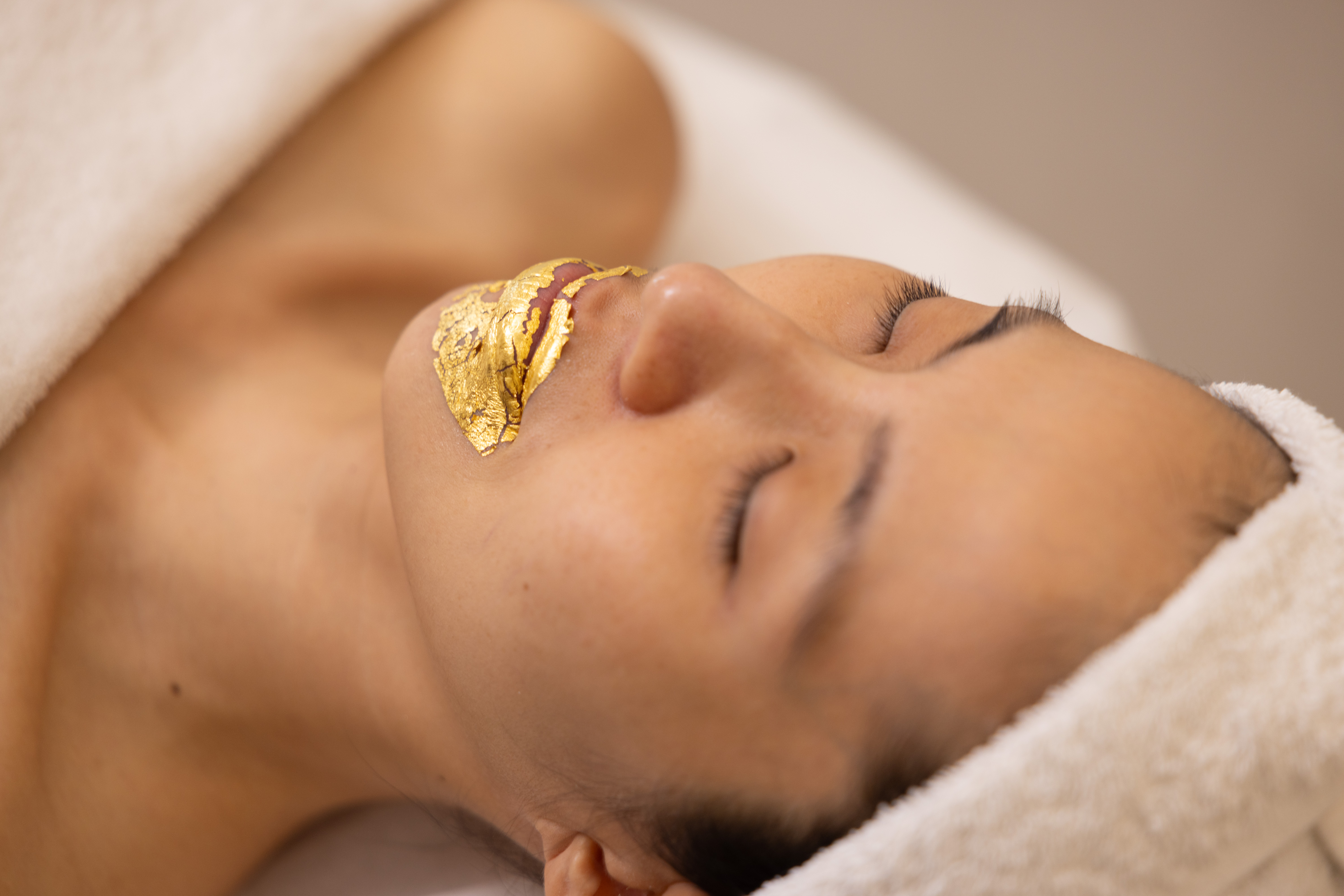 Massage the cream into the skin with moistened fingertips using circular motions until the gold is fully absorbed. Remove any residue if needed.